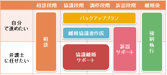 そこで当事務所では、上記各段階のすべてに、以下のようなサービスメニューを